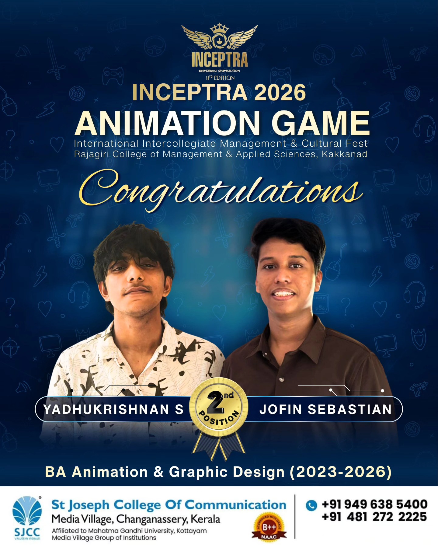 St. Joseph College of Communication (SJCC) proudly congratulates Yadhukrishnan S and Jofin Sebastian, students of BA Animation & Graphic Des....